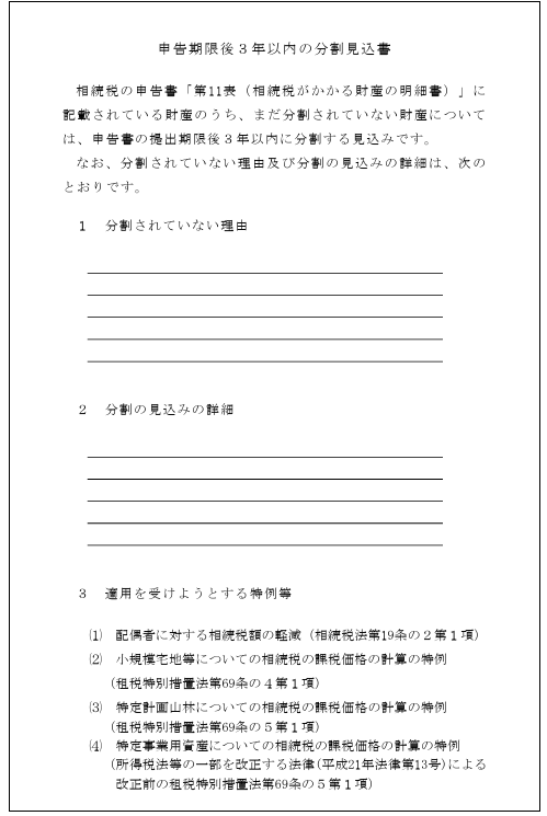 3年以内の分割見込書という