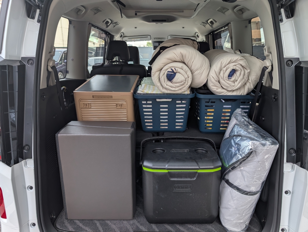 車の中にお布団をセット↓